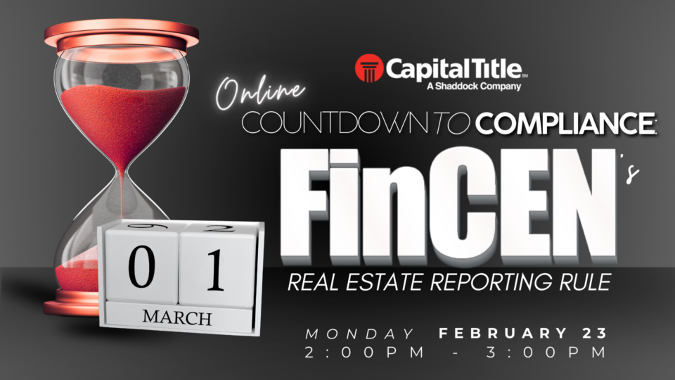 FeaturedOnline OnlyJoin us ONLINE, Monday, February 23rd Countdown to Compliance: FinCEN’s Real Estate Reporting Rule Tick Tock! Join us for an insightful virtual session on FinCEN’s upcoming […]